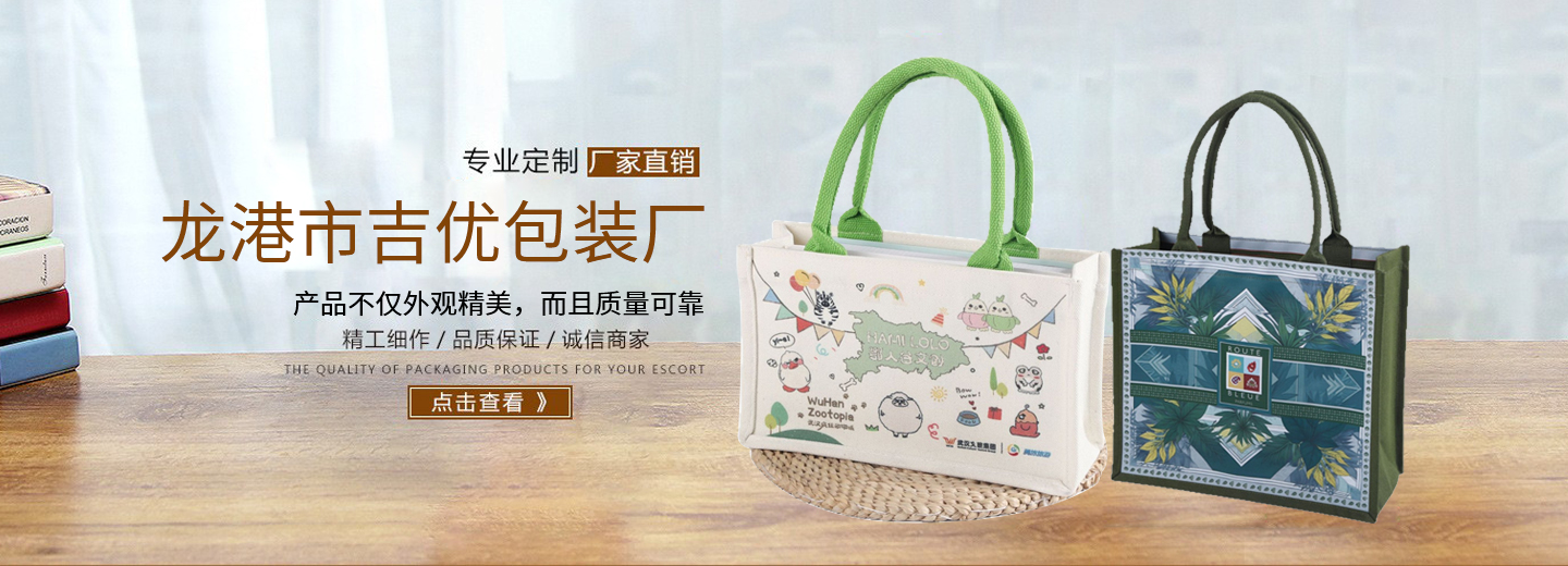 龍港市吉優包裝廠專注于禮品手提袋、束口袋、塑料手提袋、牛皮紙袋、帆布袋以及購物環保袋等多種產品的定制服務,作為一家專業的包裝袋定制廠家,我們注重細節,追求品質,以滿足不同客戶的定制需求。我們的產品不僅外觀精美,而且質量可靠,深受廣大客戶好評。龍港市吉優包裝廠擁有完整、科學的質量管理體系,誠信、實力和產品質量獲得業界的認可。歡迎各界朋友蒞臨參觀、指導和業務洽談。